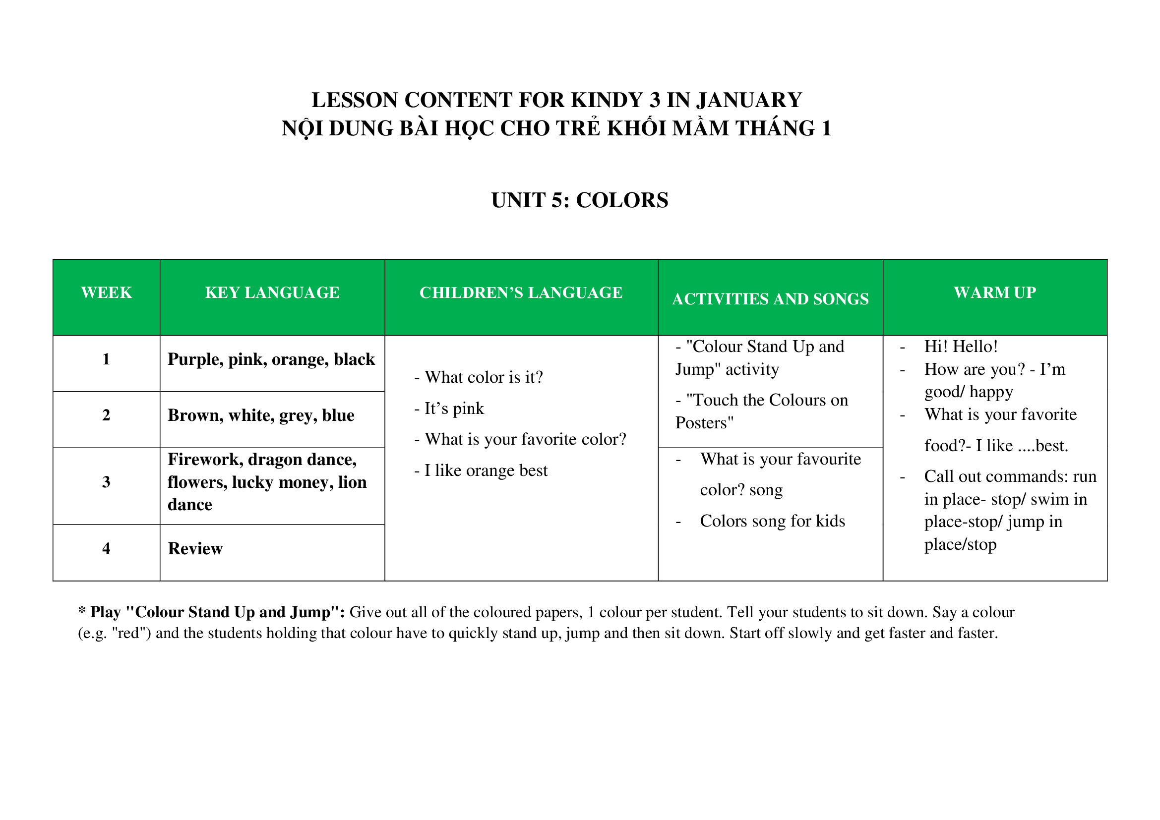 Chương trình học lớp Mầm 1, Mầm 2, Mầm 3 làm quen tiếng anh tháng 01.