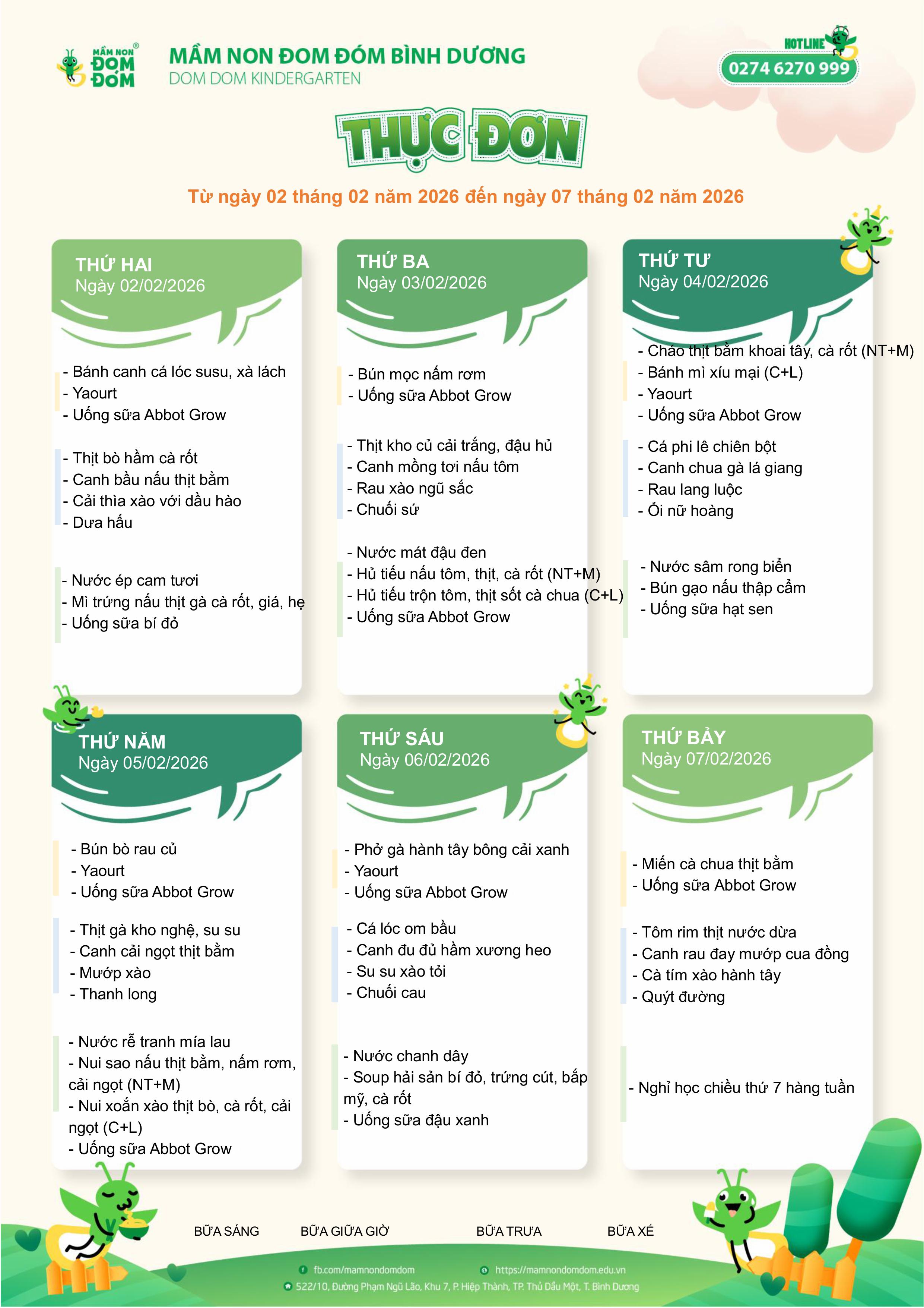 Thực đơn Khối Nhà trẻ Tuần 3 tháng 02 NH 2025 - 2026